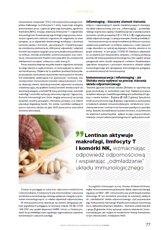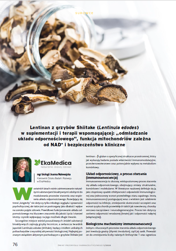 Lentinan z grzybów Shiitake (Lentinula edodes) w suplementacji i terapii wspomagającej: „odmładzanie układu odpornościowego", funkcja mitochondriów zależna od NAD+ i bezpieczeństwo kliniczne