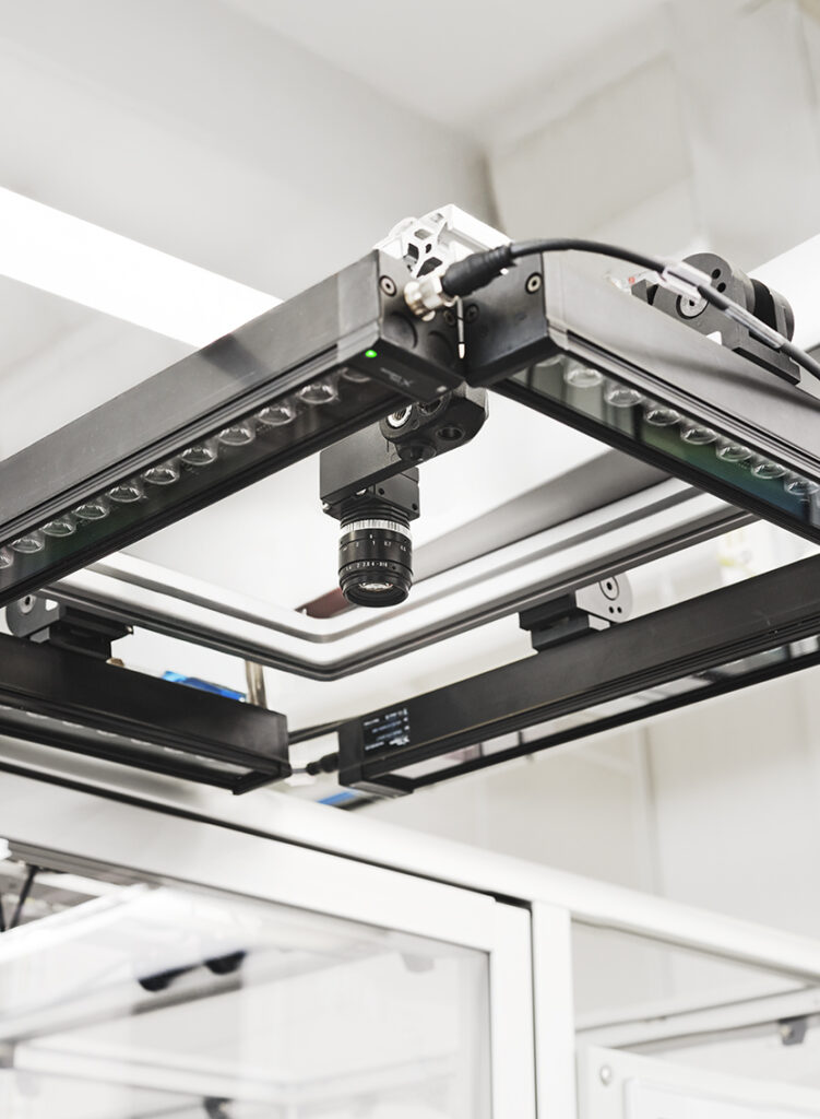 Jak działa system? Operator umieszcza pudełko z fiolkami na wlocie maszyny, a kamera wykonuje zdjęcia przy czterech różnych stopniach oświetlenia fotostereoskopowego, co pozwala uzyskać lepszy obrys każdej fiolki. System zlicza wszystkie zidentyfikowane fiolki i wyświetla je w interfejsie HMI z wykorzystaniem dobrze udokumentowanych procesów. Ułatwia to obsługę linii i upraszcza weryfikację.